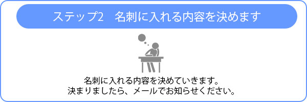 名刺に入れる内容を決めていきます。決まりましたら、メールでお知らせください。