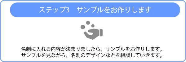 名刺に入れる内容が決まりましたら、サンプルをお作りします。サンプルを見ながら名刺にデザインを相談していきます。
