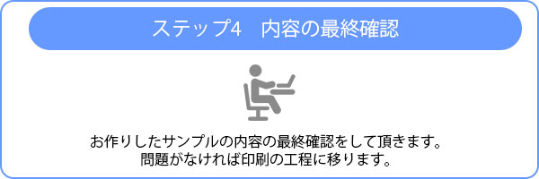 お作りした内容の最終確認をして頂きます。問題がなければ印刷の工程に移ります。